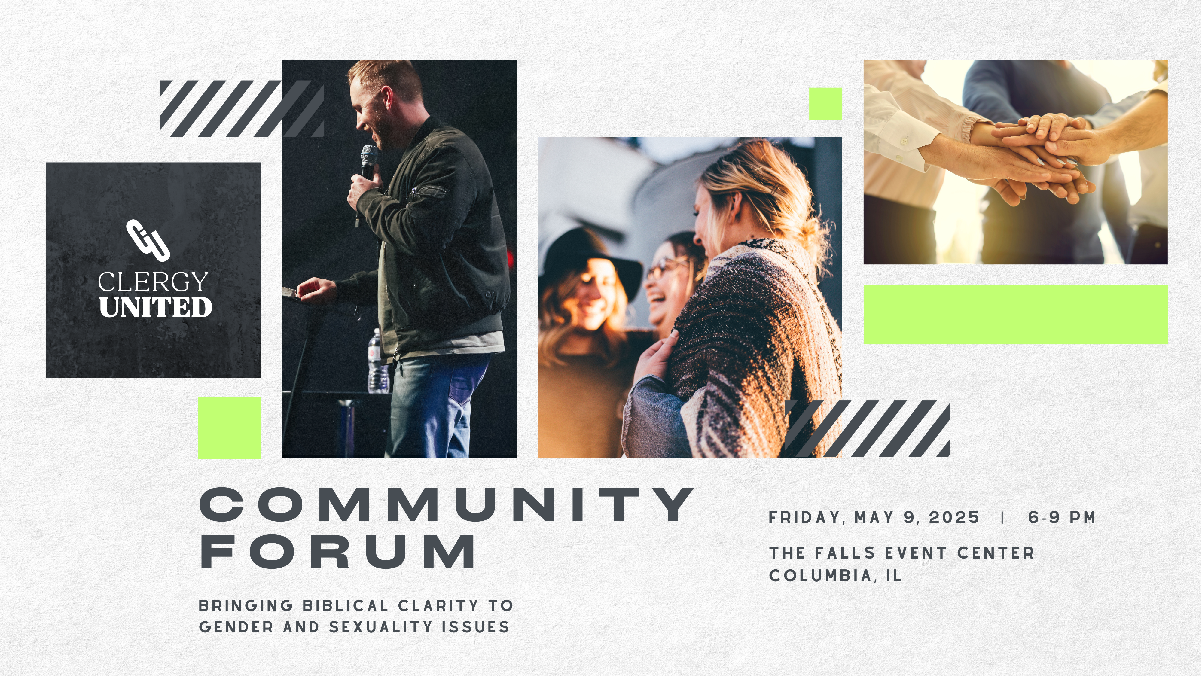 Gender issues affect everyone in different ways. Join us, Clergy United, May 9, 2025 at 6:00 pm at The Falls Event Center for an evening dedicated to educating, encouraging, and equipping you to approach these issues in a Biblical way.  Be encouraged! No matter how these issues affect you, there is always hope in Christ. Doors will open at 5:30 pm. Students get free admission but still need to register.